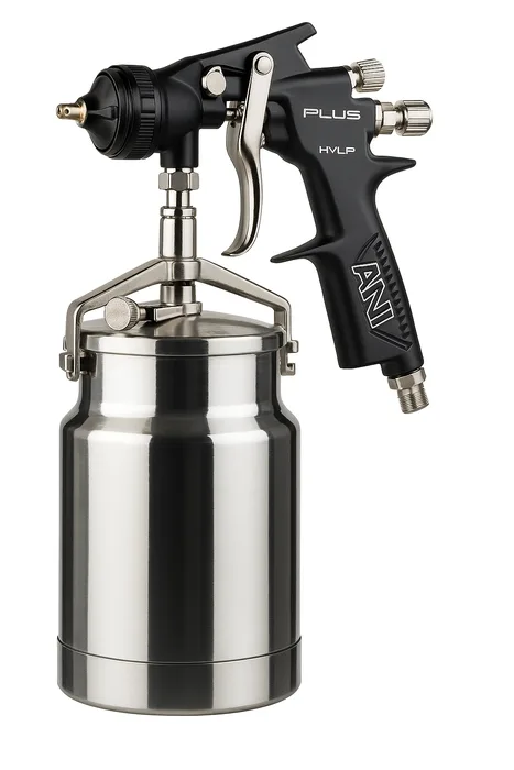 איירבראש חצי‑מקצועי מסדרת PLUS של ANI איטליה, תוכנן לעבודות צבע איכותיות עם מיכל תחתון מאלומיניום – אידאלי לתעשייה, למוסכים, לעבודות עץ, מתכת, ולכל מי שמחפש ציוד אמין שמעניק תוצאות אחידות ויציבות.